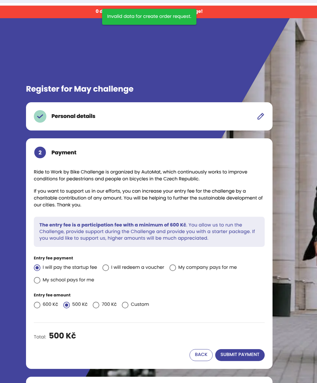 Created attachment 20 [details] Payment error Když zmáčknu na "Submit a payment"